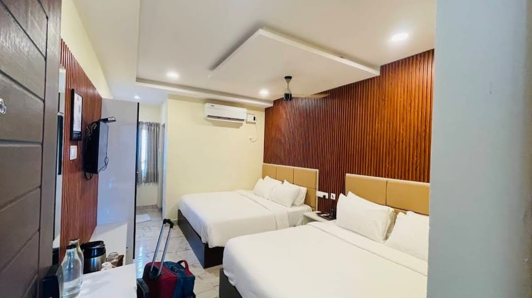 The Super Deluxe Room offers cozy comfort with modern amenities like free Wi-Fi, air conditioning, a flat-screen TV, and a mini-bar. The room features a comfortable twin beds, and a well-appointed bathroom with complimentary toiletries for a convenient, value-driven stay.